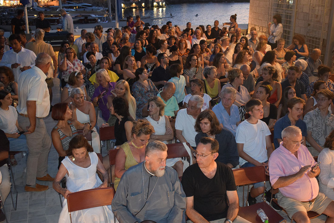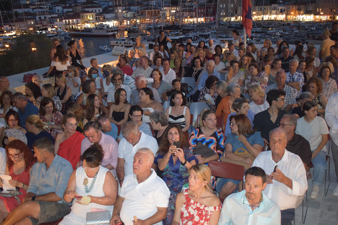 Μια βραδιά μαγική σε κάθε της στιγμή! Στην πάντα φιλόξενη ταράτσα του Μουσείου της Ύδρας, οι καρέκλες και οι διάδρομοι είχαν καταλειφθεί από νωρίς το απόγευμα, ενώ οι βράχοι και τα σοκάκια που περνούν γύρω από το χώρο είχαν κυριολεκτικά πλημμυρίσει από κόσμο.